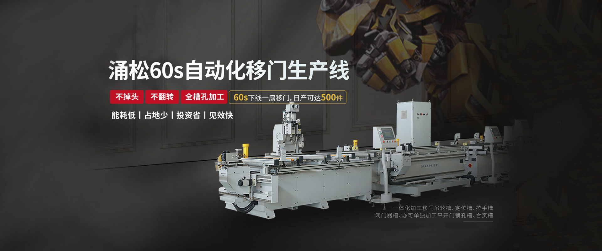 2021-01-30涌松榮獲2020金智獎(jiǎng) 涌松自動(dòng)化建立了全國首臺全自動(dòng)移門加工中心,以強(qiáng)大的兼容性適用多項(xiàng)移門五金件槽孔加工,其具備的單機(jī)多功能多軸加工工藝,可以提高一倍的產(chǎn)能,對于移門加工自動(dòng)化具有變革性意義。